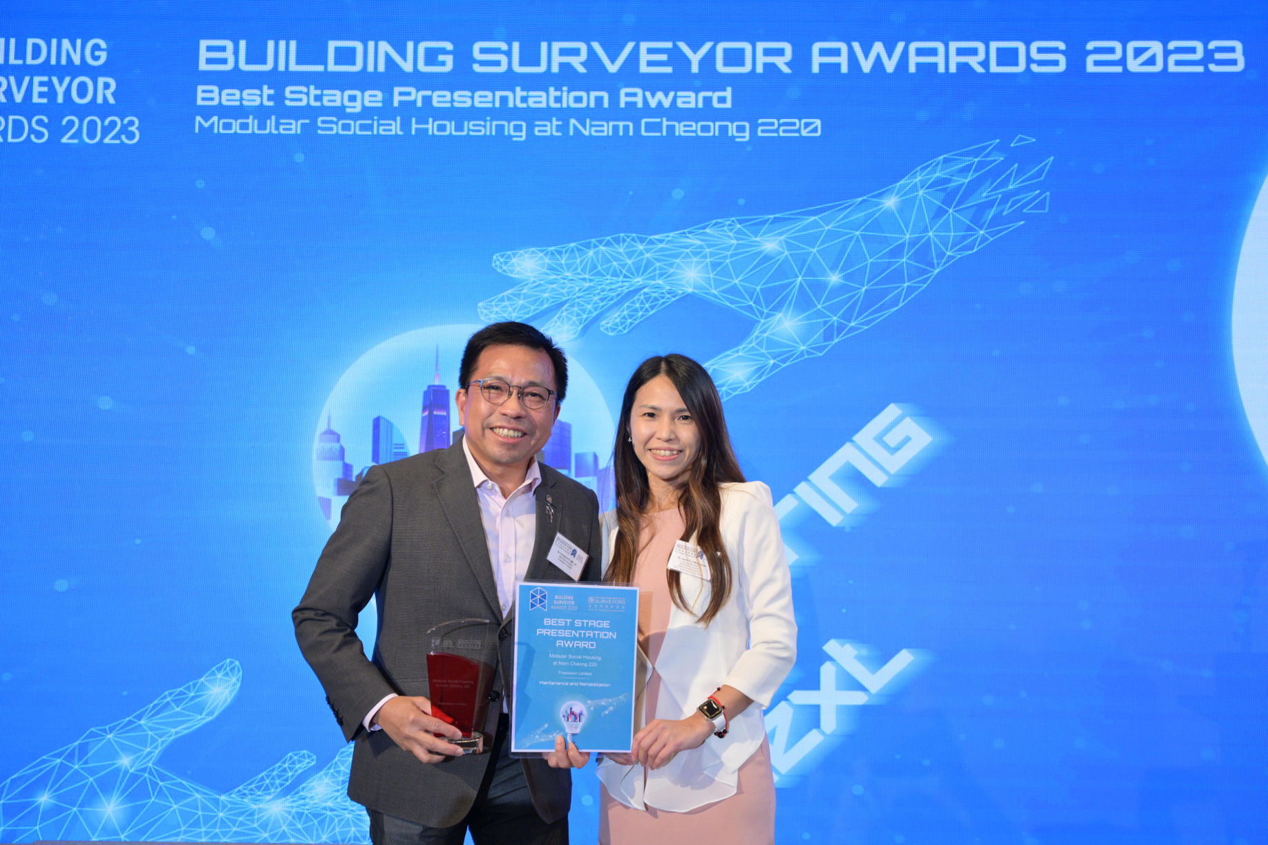 The Building Surveyor Awards 2023 (BSA 2023) Presentation Ceremony-cum-Gala Dinner was successfully held on 16 June 2023 (Friday) at JW Marriott Hotel Hong Kong. We are very honoured to have Ms Bernadette LINN Hon-ho, JP, Secretary for Development to be our Guest of Honour. Freevision Limited is the Grand Award Winner of BSA 2023. For more details of the results, please click Result Announcement of Awards